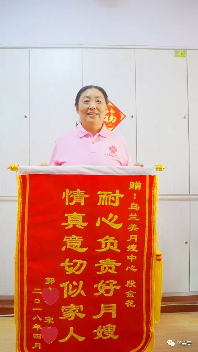 “我們清楚烏蘭美母嬰服務(wù)中心已經(jīng)收到過(guò)很多面錦旗,但是這面不同!這是一面有含金量的錦旗,它不僅僅表達(dá)了我們對(duì)烏蘭美母嬰服務(wù)中心的謝意,更是表達(dá)對(duì)烏蘭美月嫂段金花的愛(ài)意!”